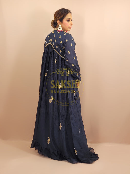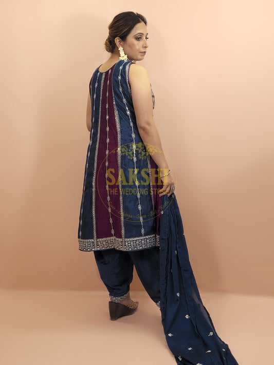 Navy Blue and Wine Pakistani Anarkali Suit with Tulip Pants