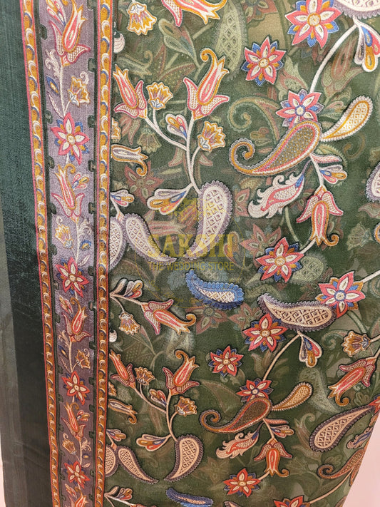 Muslin Green Party Wear Suit Set for Women with Designer Brasso Dupatta