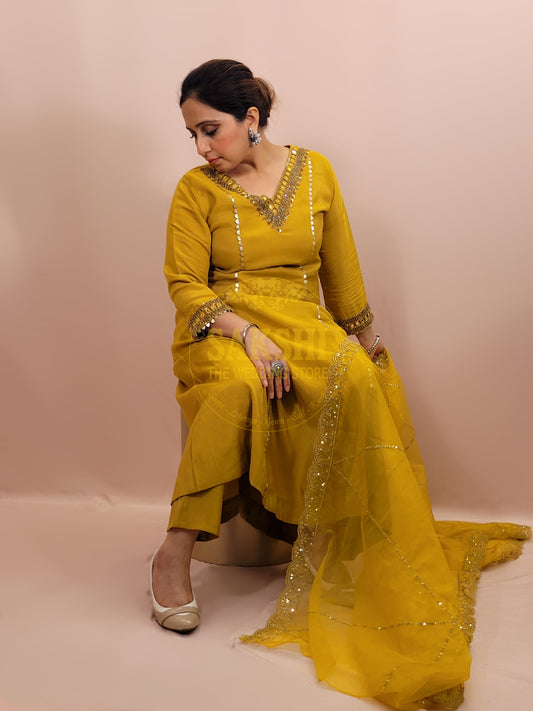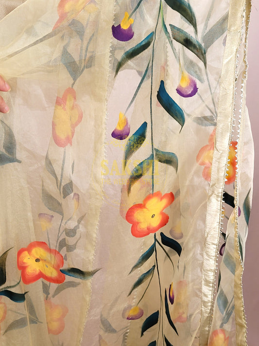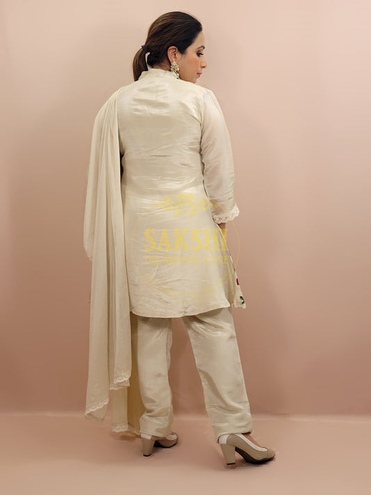 Creme Off White Tissue Anarkali with Pants and Dupatta