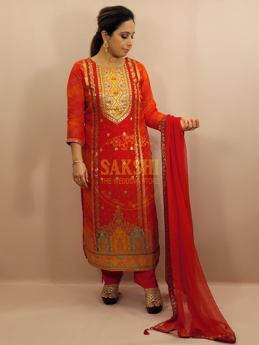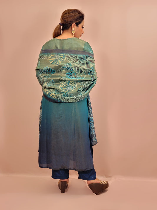 Blue Ombre Shimmer Straight Suit with digital print dupatta