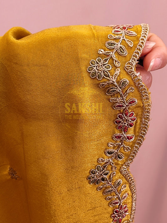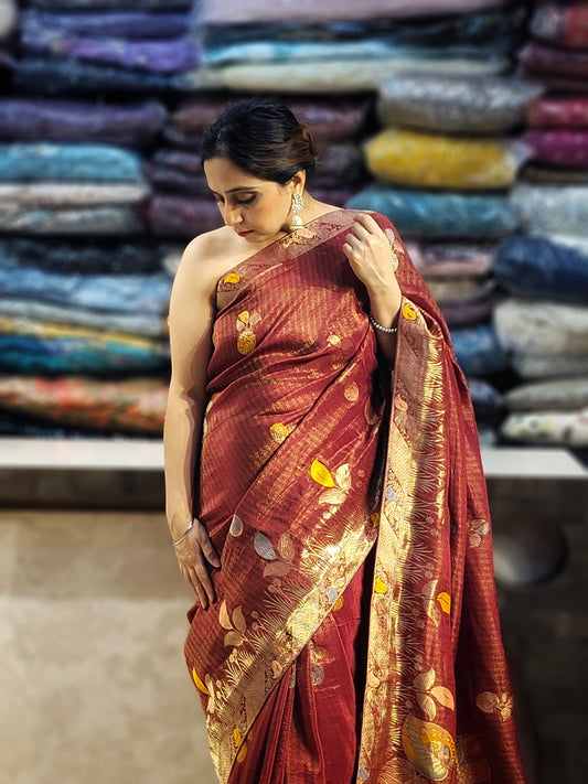 Rust Maroon Tissue Crepe Multicolor Weave Saree