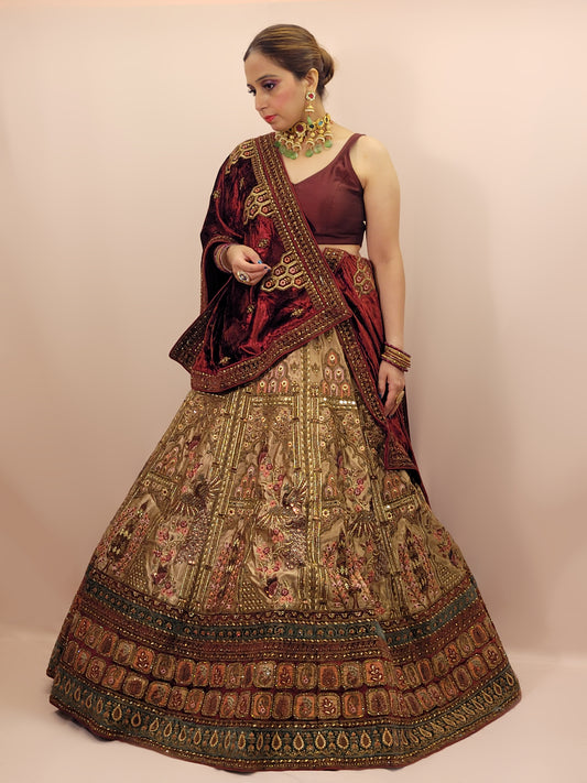 Golden Velvet Heavy Flare Lehanga with Double Dupatta