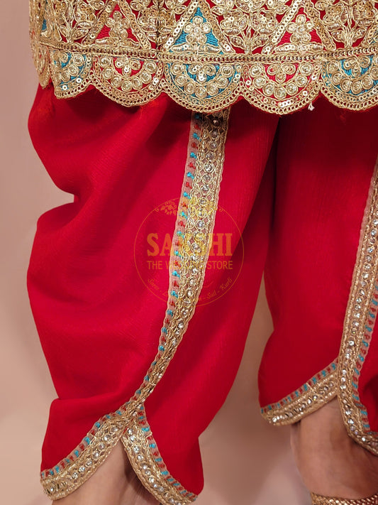 Red Georgette Gown with Saree Drape and Designer Shrug