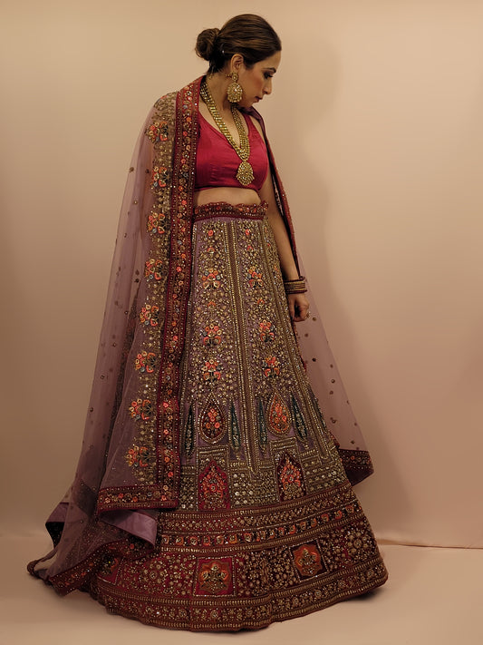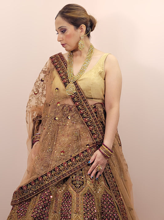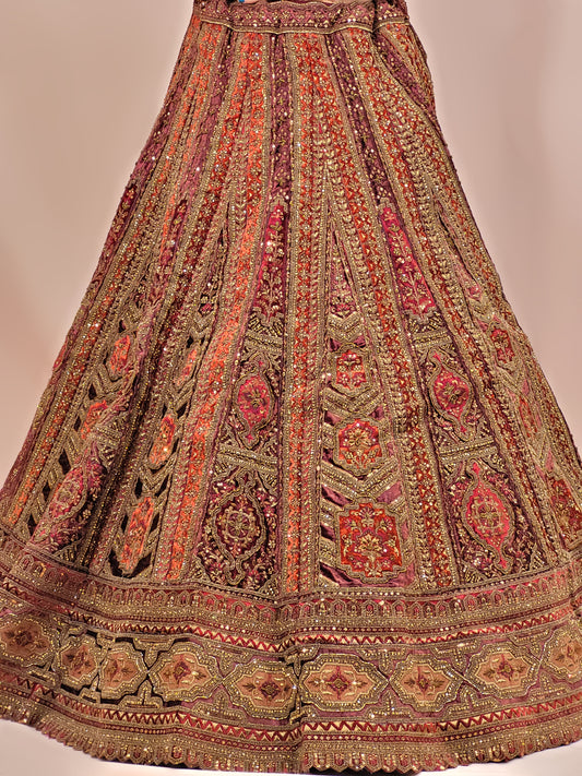 Wine and Rani Velvet Muticolor Bridal Lehenga