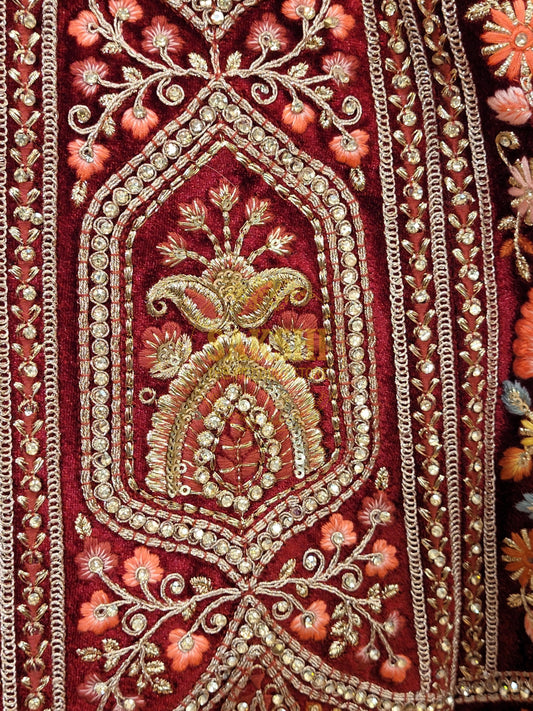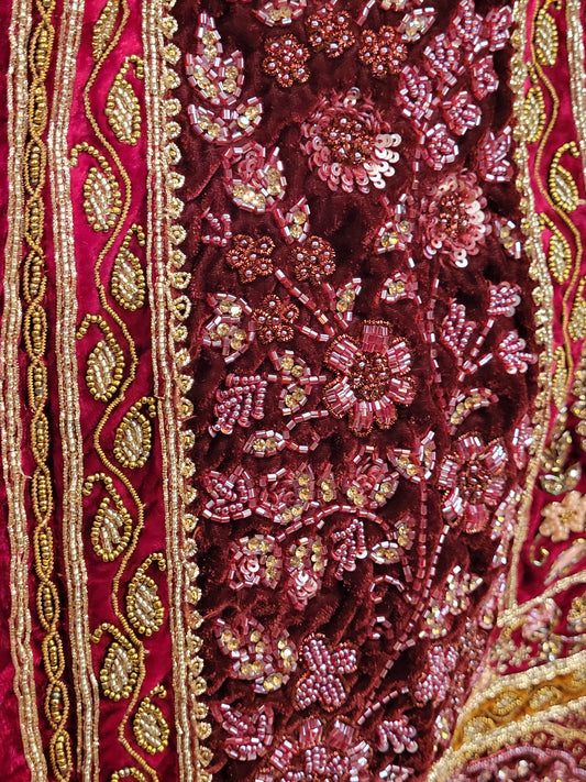 Beautiful Maroon Velvet Multicolor Bridal Lehenga
