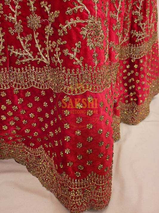 Red Velvet Bridal Lehenga with Heavy Dupatta