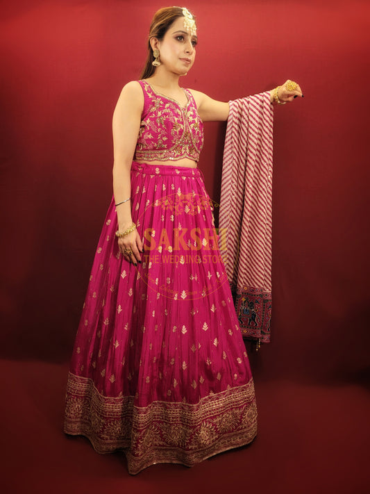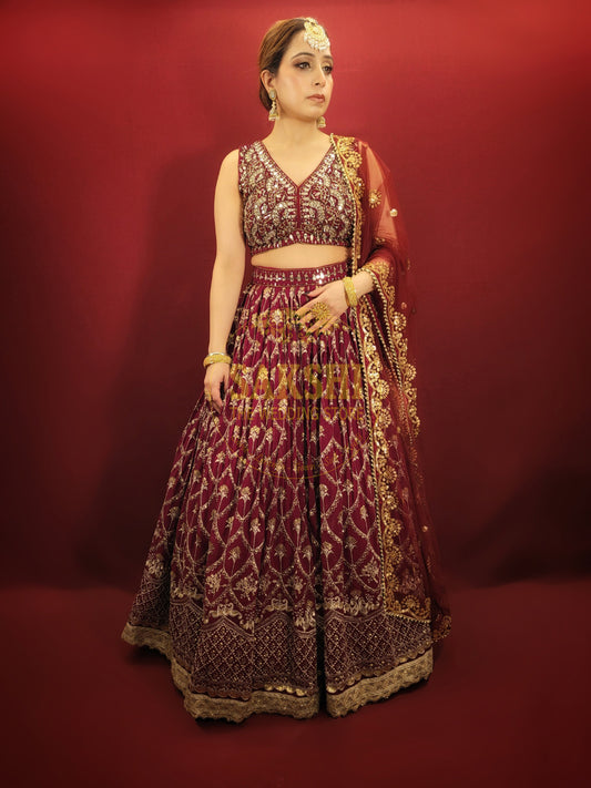 At SAKSHI-The Wedding Store, we believe that every bride deserves to look like a princess on her special day. It should be the perfect princess lehenga for your special occasion That's why we offer a premium lehenga section, where you can find the most exquisite and exclusive lehenga choli designs, handcrafted by our skilled artisans. Our premium lehengas are made with the finest fabrics. These may be micro velvet lehenga, silk lehenga, georgette velvet lehenga, and net lehenga. Adorned with intricate embroidery, sequins, beads, and zari work. We have a luxurious and beautiful collection of lehenga choli designs that will make you look stunning and elegant.