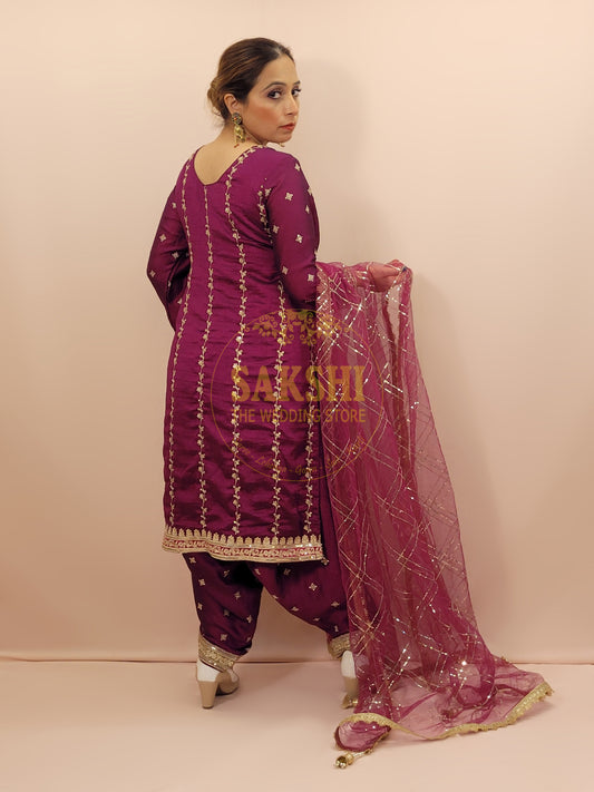 Purple Embroidered Salwar Kameez Set (Tulip Pants)