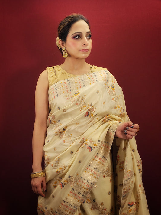 The Artistry of Weaves Each region of India contributes its unique stitch to the tapestry of saree-making. From the Banarasi sarees, resplendent with their gold and silver brocade, to the ethereal elegance of Chanderi sarees, the craftsmanship speaks volumes of the local lore and artisanship.