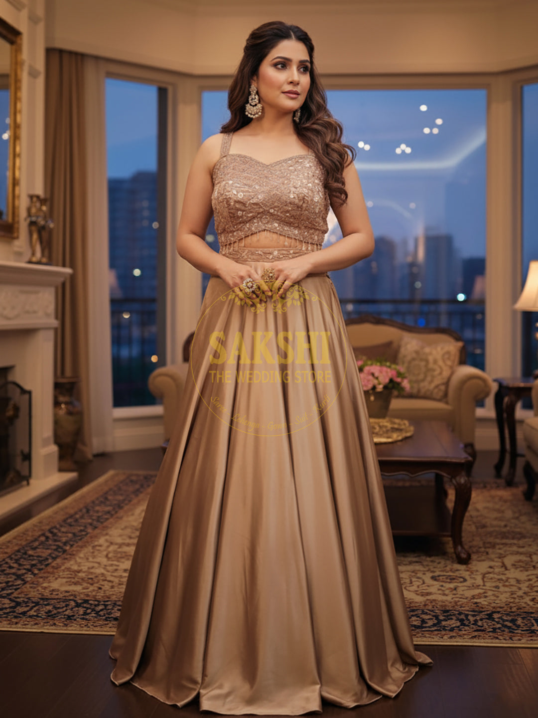 Designer Wedding and Party Wear Gold Lehenga For Women. Ready to Wear. Heavy Handwork Crop Top.